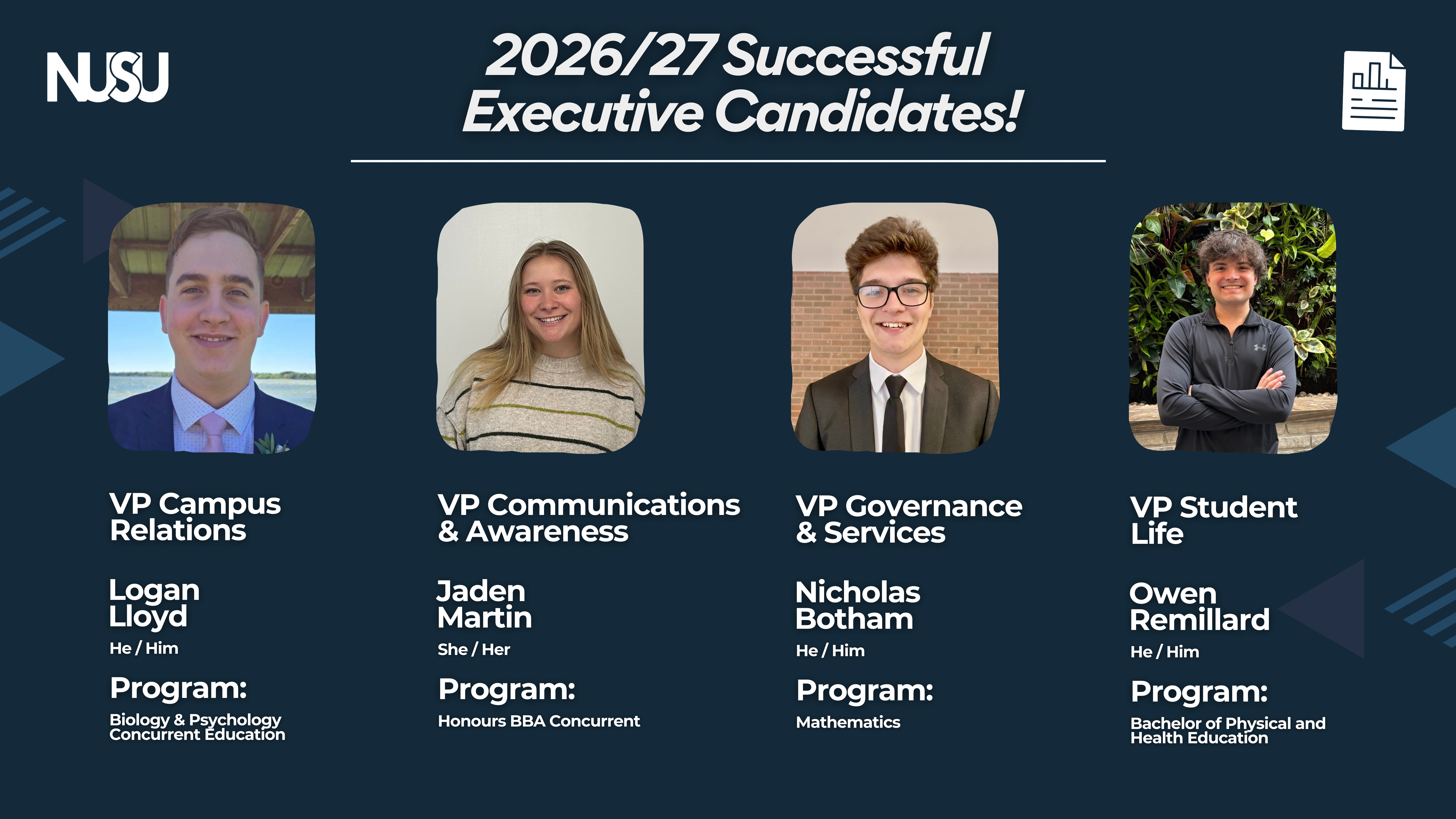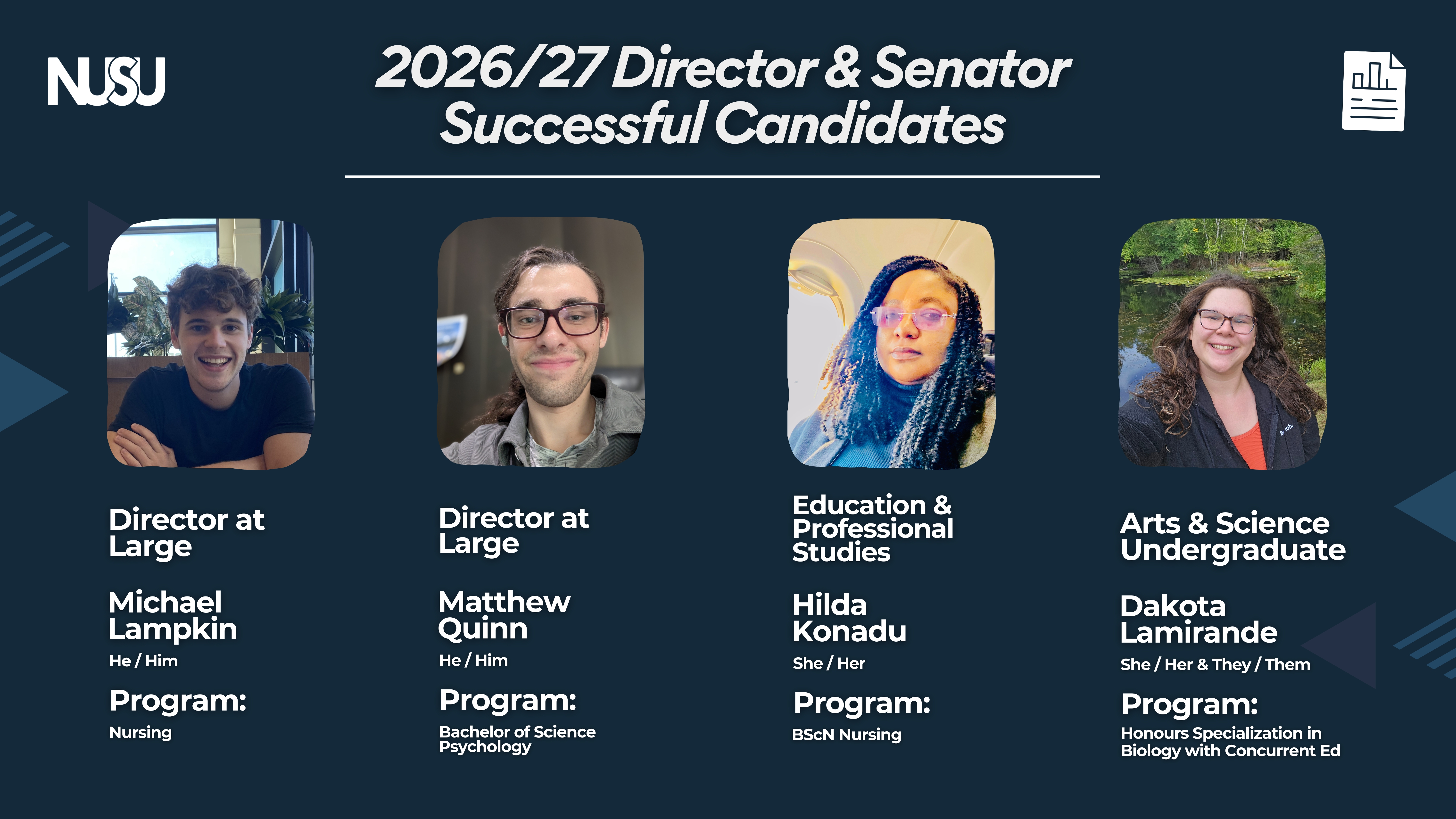 2026/2027 Executive, Director At Large & Student Senator Election Results